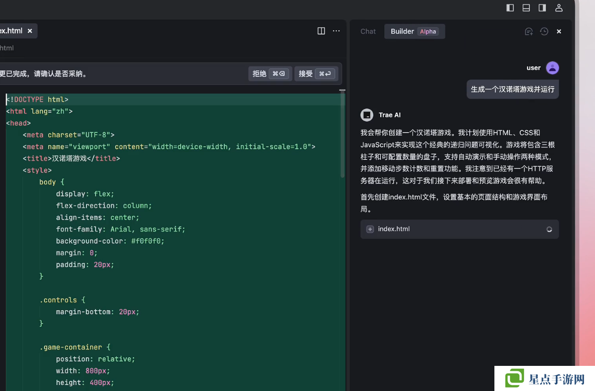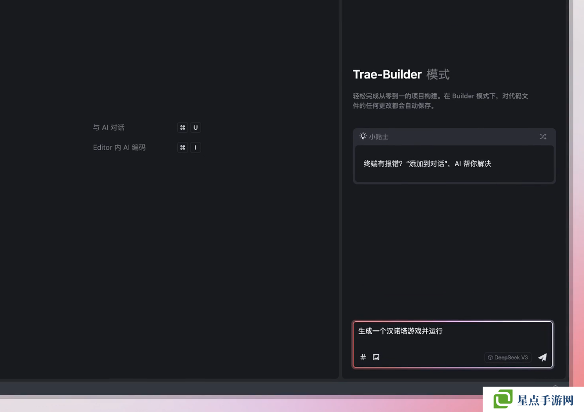 此外,Trae 國內(nèi)版搭載了全新 Builder 模式,能夠幫助開發(fā)者通過自然語言描述端到端生成應(yīng)用:只需要用簡單的語言描述需求,Trae 就可以迅速搭建起項(xiàng)目框架,還能持續(xù)進(jìn)行調(diào)優(yōu)修改,產(chǎn)出可用代碼。
