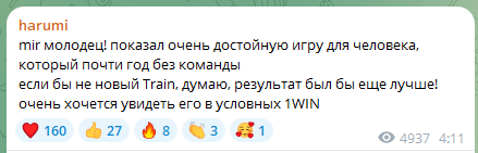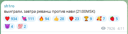 我們贏了。明天是對(duì)陣NAVI的半決賽。mir很強(qiáng),如果有誰(shuí)需要一個(gè)經(jīng)驗(yàn)豐富且實(shí)力強(qiáng)勁的步槍手,就簽下他吧。