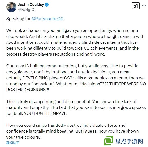 聲明中的“你/你們”并沒有直接指向某個人,但幾個小時后,F(xiàn)aNg發(fā)表了代表Party Astronauts的聲明,反駁了Axed的說法,稱Axed的行為讓隊伍措手不及,并指責Axed才是“自掘墳墓”的人。