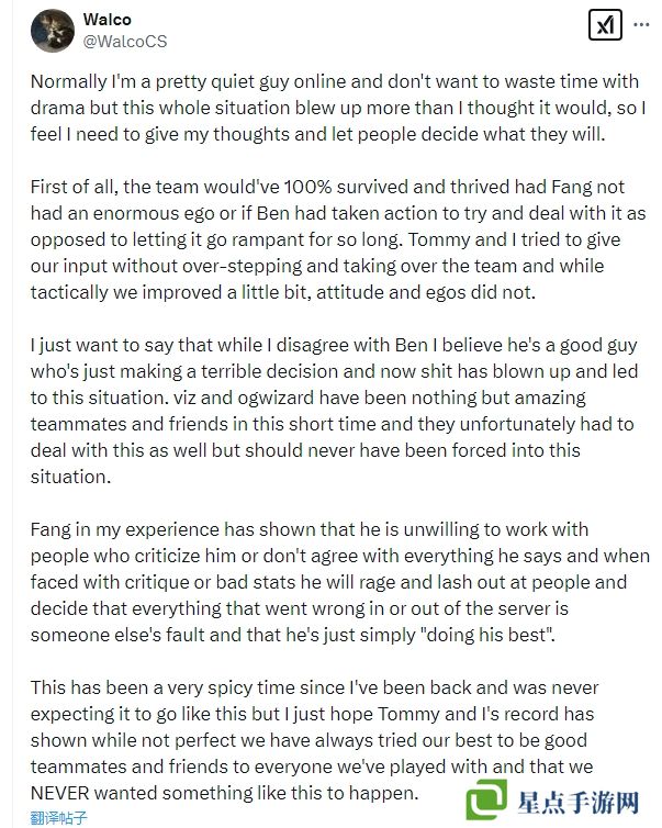 這場鬧劇繼續(xù)升級,再Walco確認離隊后,在另一篇帖子中直接點名FaNg,稱他制造了這些問題。
