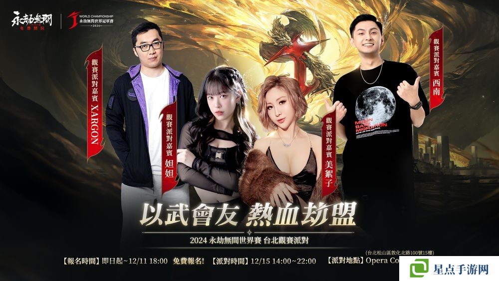 此次賽事也首度在臺北知名酒吧 Opera Cocktail Bar 舉辦劫盃觀賽派對,活動將開放亞服玩家免費報名,邀請到知名實況主 Xargon、妲妲咬果凍、美絮子 Melody、蔣西南到場作為特別來賓跟玩家一起組隊同樂。