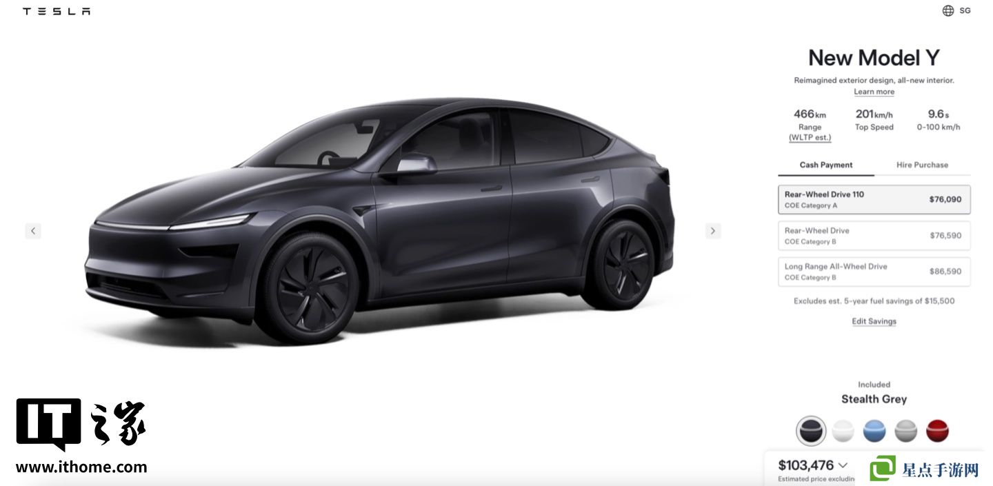 專為繞過“動(dòng)力稅”設(shè)計(jì):特斯拉在新加坡推出零百加速 9.6 秒的煥新 Model Y 汽車 110 kW 后驅(qū)版