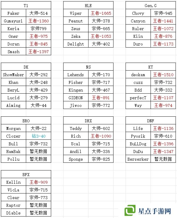 截止到2月7下午14:00,LCK賽區(qū)**有19名選手打上韓服王者,其中Viper以王者-1665的高分登頂?shù)谝?;而LCK賽區(qū)同樣有選手在鉆石段位掙扎,此人未BRO選手Clozer,目前韓服段位鉆3。