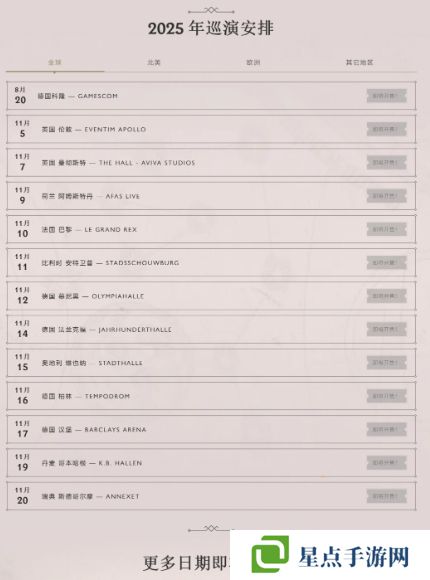 另外,更多站點(diǎn)的演出信息將在之后公布,包括北美、波蘭和中國(guó)的場(chǎng)次。