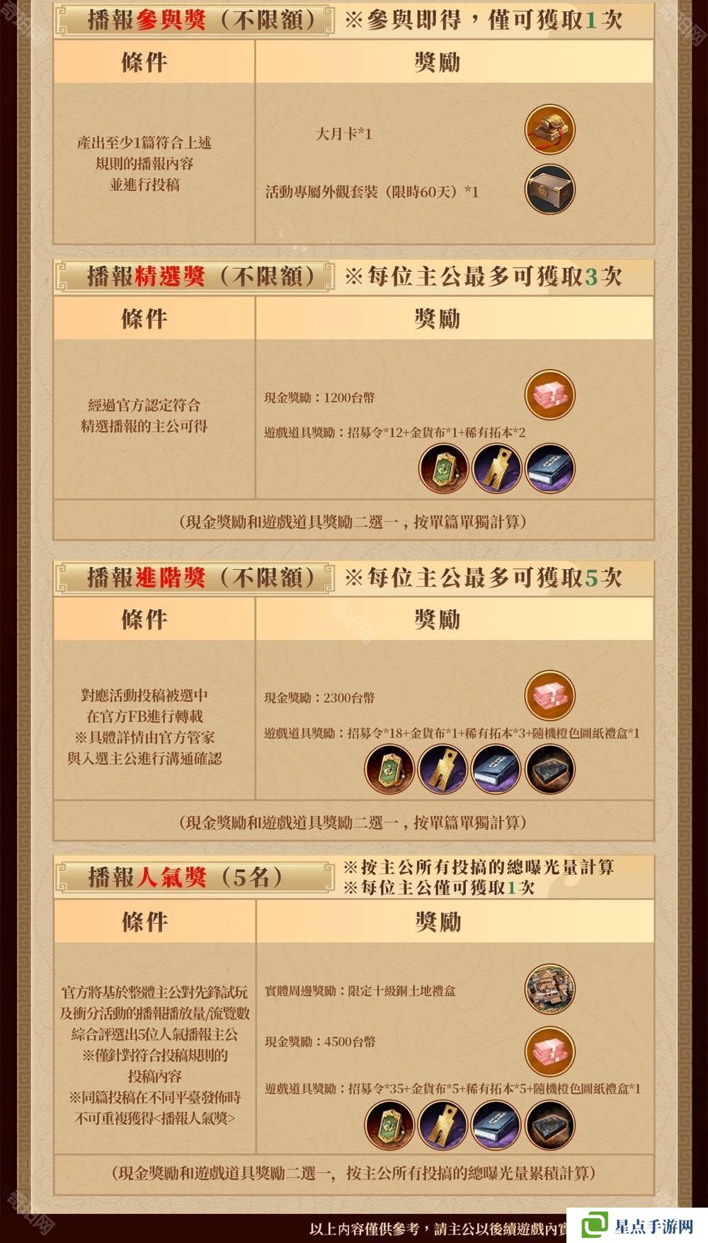 參與播報(bào)社招募活動(dòng),投稿三國演弈攻略 / 直播,可得現(xiàn)金好禮!還有專屬外觀套裝、大月卡、十級銅土地禮盒等一同奉上!