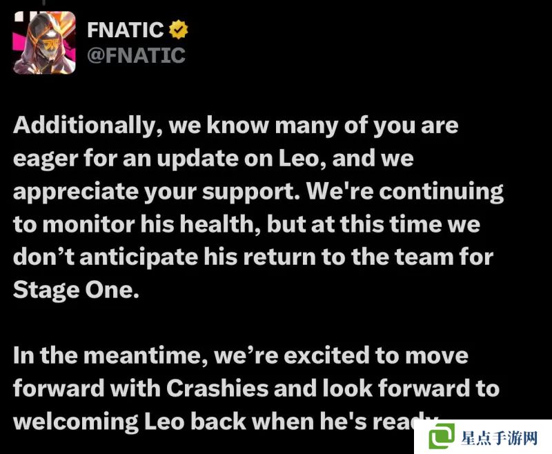 FNC官方更新:Leo因健康原因暫不歸隊(duì),Crashies將繼續(xù)征戰(zhàn)