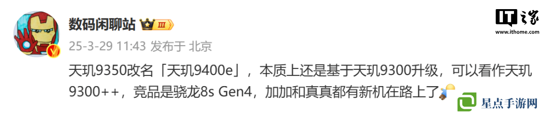 也許是受到 iPhone 16e 命名的啟發(fā),也可能是汲取了 PC 行業(yè)英特爾和 AMD 的命名方式,博主 @數(shù)碼閑聊站 的最新爆料顯示原本的“天璣 9350”已經(jīng)改名為“天璣 9400e”了。