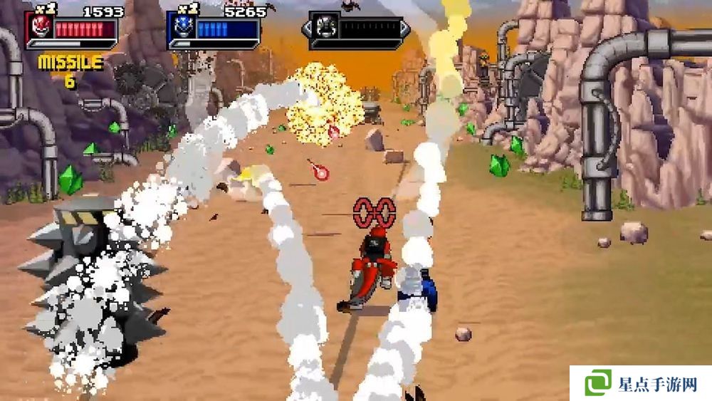 游戲采用經(jīng)典的 16 位元風(fēng)格 2D 點陣?yán)L圖呈現(xiàn),結(jié)合多樣化玩法,包括橫向捲軸動作過關(guān)、以擴大縮小來模擬 3D 空間感的 2.5D 飛車追逐戰(zhàn),還有駕駛機器恐龍合體金剛戰(zhàn)神的 2.5D 第一人稱巨大機器人戰(zhàn)斗。