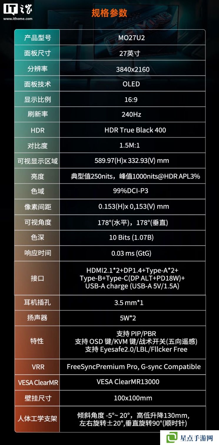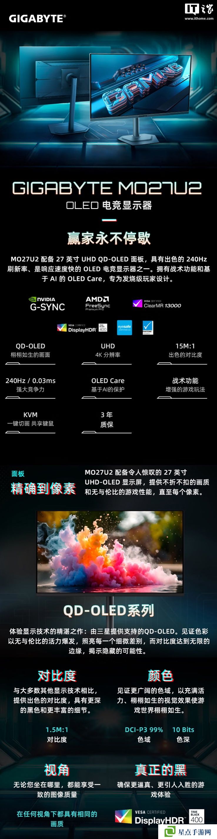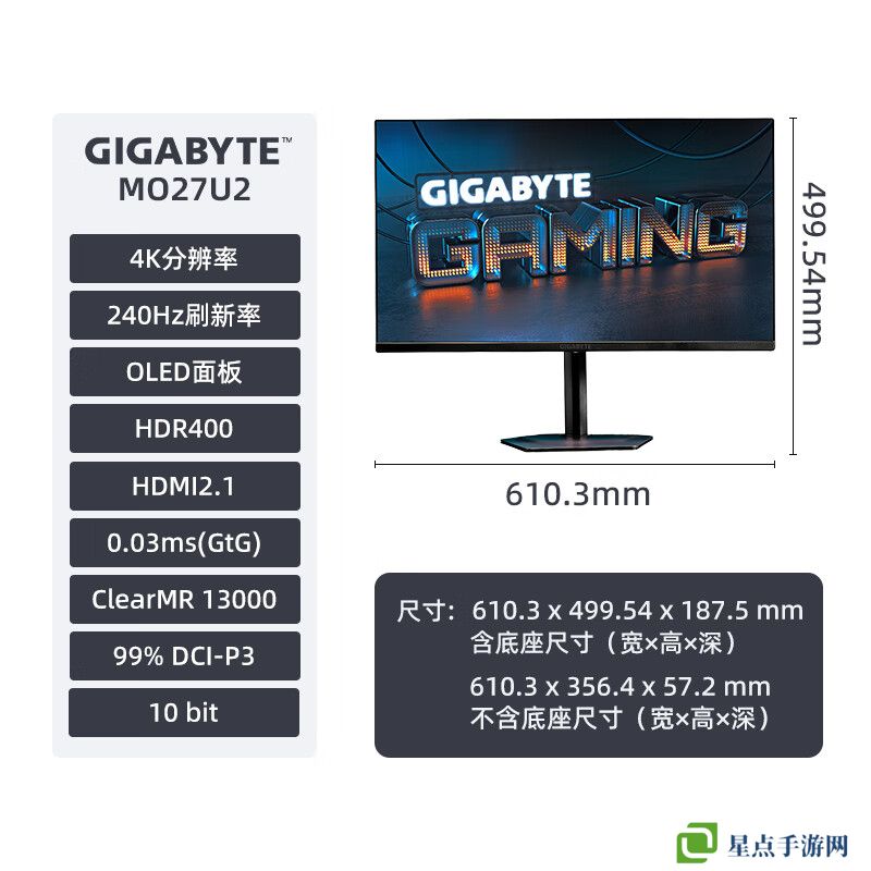 技嘉“MO27U2”27 英寸顯示器開售:4K 240Hz QD-OLED + 雙 5W 揚(yáng)聲器,5489 元