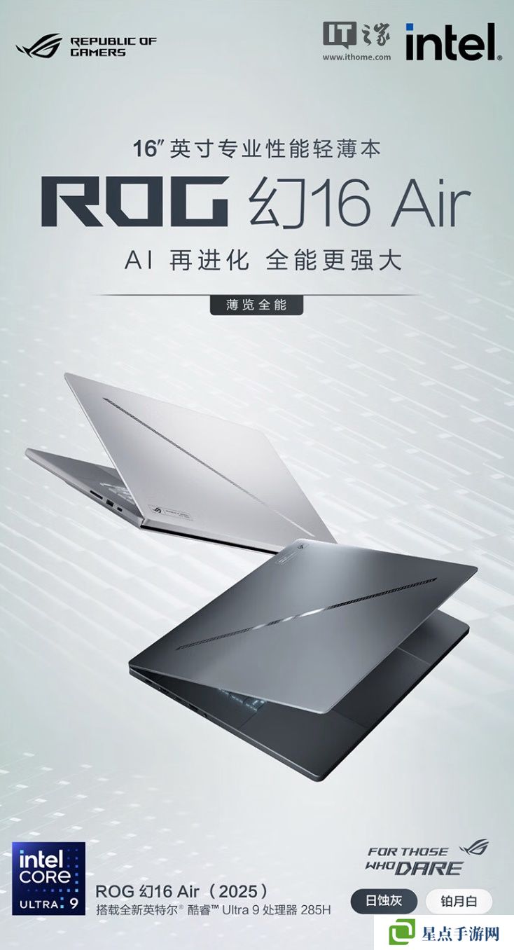 華碩 ROG 幻 16 Air 2025 筆記本上架:Ultra 9-285H + 32G + 1T + RTX5080 售 23999 元