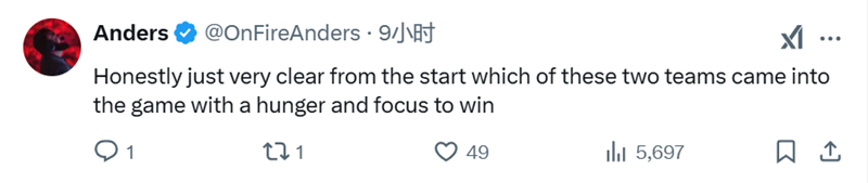 說實話,從一開始就很明顯看出這兩支隊伍中哪支帶著求勝的渴望和專注投入到比賽中。