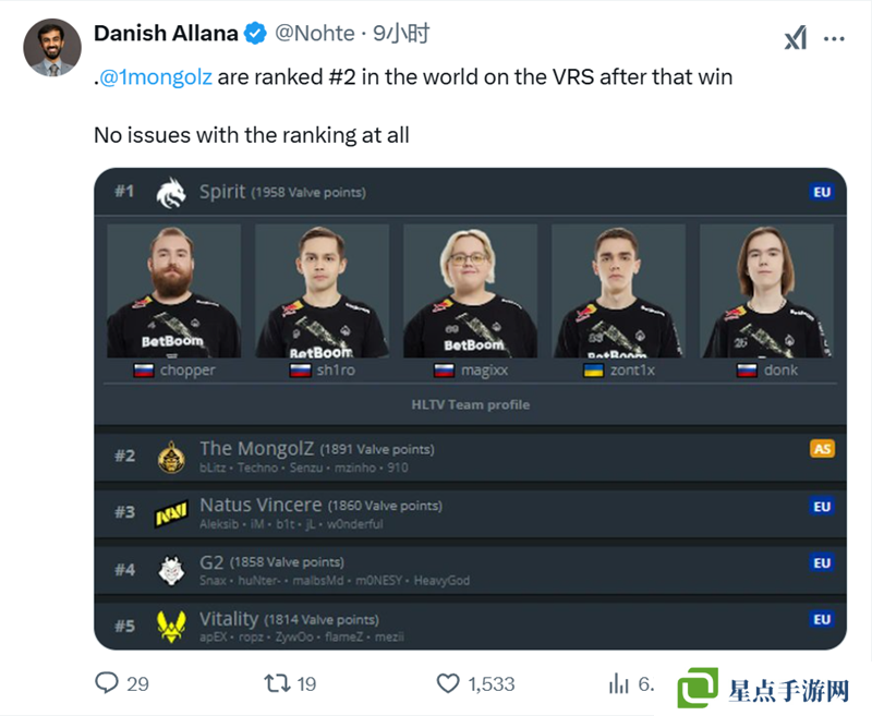 這場比賽之后直接VRS世界排名第二。