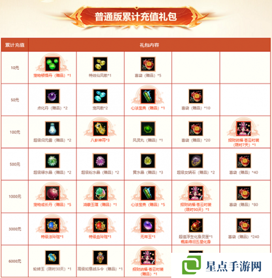 活動(dòng)期間,普通版和經(jīng)典版玩家累計(jì)充值達(dá)到10元、50元、100元、500元、1000元、3000元、6000元,即可獲得對(duì)應(yīng)的豐厚禮包獎(jiǎng)勵(lì)。累計(jì)充值滿(mǎn)100元, 即可獲贈(zèng)限時(shí)7天的全新時(shí)裝——招財(cái)納福·蒼云;累計(jì)充值滿(mǎn)6000元,將會(huì)獲得永久時(shí)裝——招財(cái)納?!どn云!其中喜袋數(shù)量也隨著充值金額增加而增多,驚喜層層加碼。