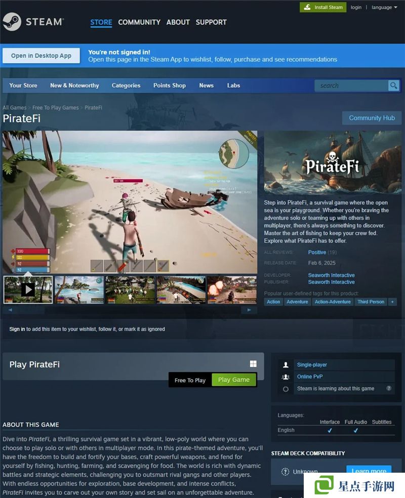 ?PirateFi?是一款在2025年2月6日登陸Steam平臺的免費多人合作生存冒險游戲。