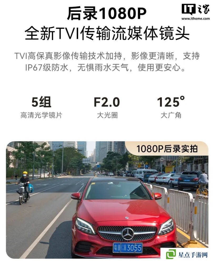 后錄 1080P 畫面,5 組光學(xué)鏡片、F2.0 光圈、125° 視角