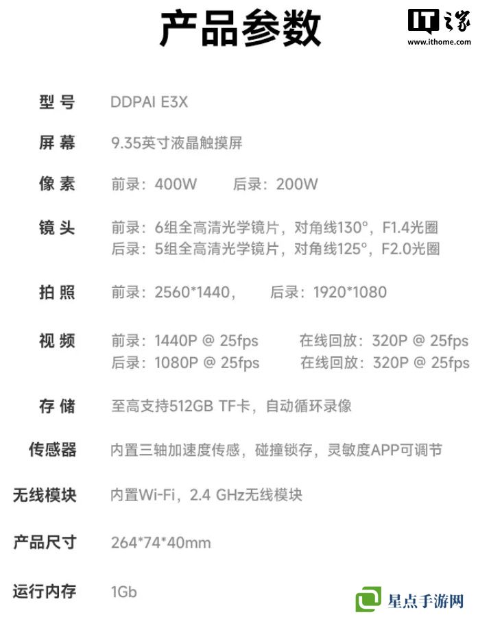 盯盯拍 2K 全屏流媒體后視鏡 E3X 售價(jià) 319 元,現(xiàn)已在京東開售,本站附配置表如下: