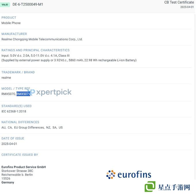 本站援引博文介紹,realme 真我 14T 5G(RMX5079)也通過 Eurofins 認證,配備 6000mAh 容量電池。此前消息稱該機將采用 6.67 英寸 120Hz AMOLED 屏,搭載 Dimensity 6300 芯片,支持 45W 快充,后置 5000 萬像素雙攝,并具備 IP69 級防塵防水。預計本月底登陸全球市場。