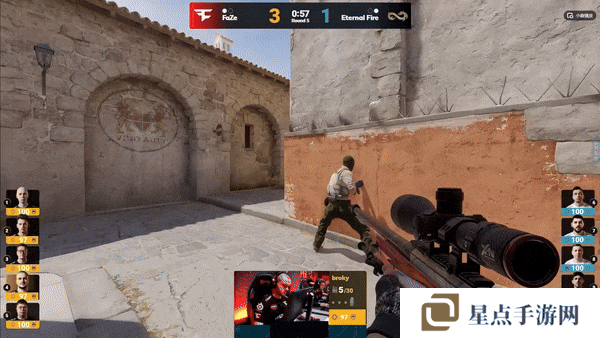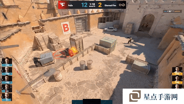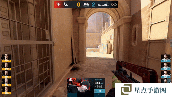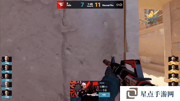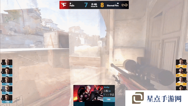 下半場攻守互換。EliGE中路先爆一人,frozen雙槍配合閃光連刷兩人,后續(xù)的B區(qū)進攻也被大表哥接住,下半場手槍局FaZe再次拿下。