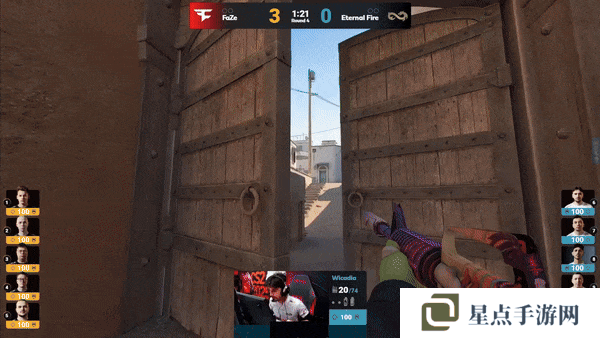 FaZe先做進攻方。手槍局,F(xiàn)aZe的A區(qū)爆彈遇到了woxic和jottAAA兩人世界位架槍,土匪直接被打退,Eternal Fire拿下手槍局。