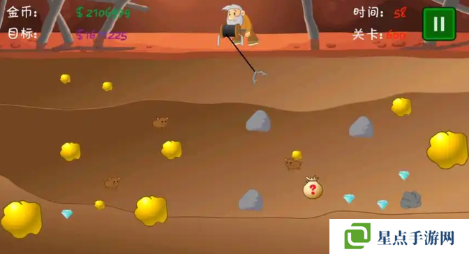 眾所周知黃金礦工這款游戲中可抓取的道具十分多樣,黃金、鉆石和石頭等道具都可抓取換錢,當(dāng)然石頭的價格要比黃金低多了……這款移植自也有的黃金礦工作品操作更容易,抓準(zhǔn)時機點屏幕就能讓抓鉤自動抓取,抓取到的黃金寶石越大獲取的資源越多,有時間限制所以盡量別抓一些*石頭!