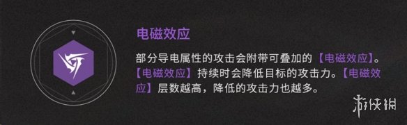 部分導(dǎo)電屬性的攻擊會(huì)附帶可疊加的【電磁效應(yīng)】。【電磁效應(yīng)】持續(xù)時(shí)會(huì)降低目標(biāo)的攻擊力?!倦姶判?yīng)】層數(shù)越高,降低的攻擊力也越多。