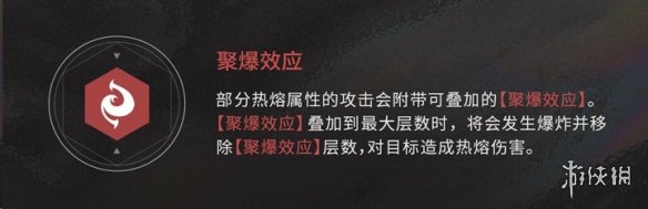 部分熱熔屬性的攻擊會(huì)附帶可疊加的【聚爆效應(yīng)】?!揪郾?yīng)】疊加到最大層數(shù)時(shí),將會(huì)發(fā)生爆炸并移除【聚爆效應(yīng)】層數(shù),對(duì)目標(biāo)造成熱熔傷害。