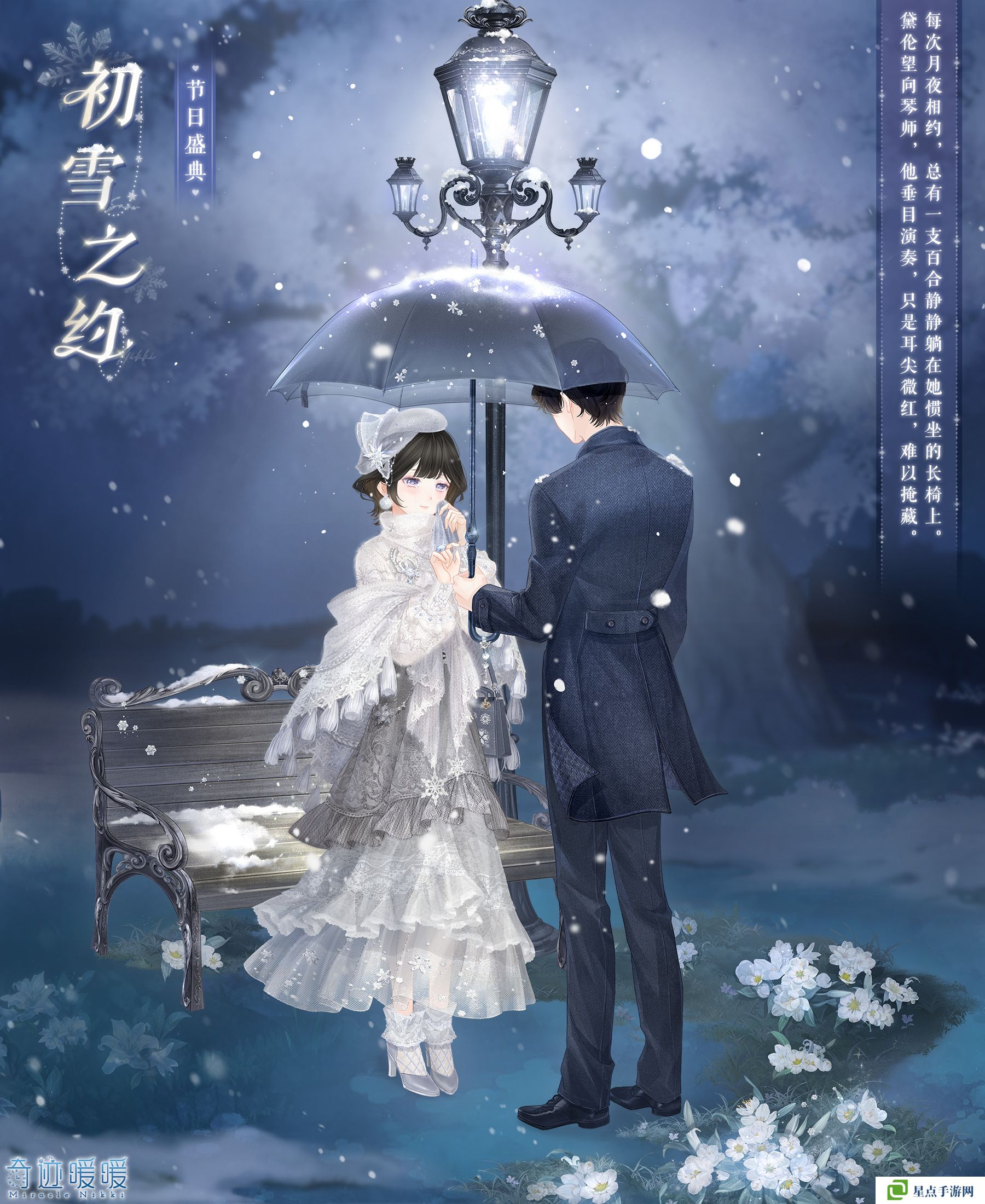 根據(jù)小尋的提示選擇符合主題的服裝搭配,收集一定數(shù)量的雪夜百合,即可集齊精美節(jié)日套裝【初雪之約】!