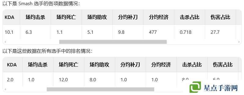 而在前15分鐘的補(bǔ)刀差和經(jīng)驗(yàn)差上,Smash的整體排名則相對(duì)靠后,前15分經(jīng)驗(yàn)差為-436排名第12,前15分補(bǔ)刀差為-2排名第9。