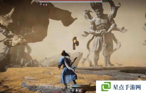 當(dāng)BOSS回到場地中央召喚巨型佛像時,最左邊一塊地區(qū)達(dá)不到我們,可以在這里用弓偷幾下。