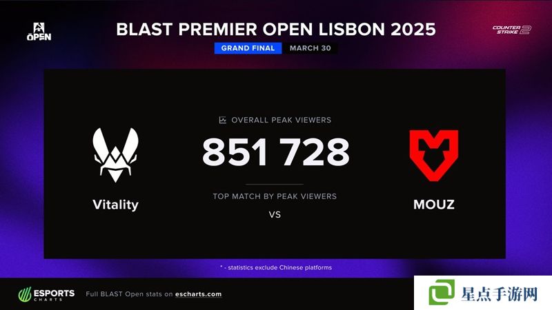 MOUZ戰(zhàn)隊奪冠,而外媒也分享了本次里斯本決賽的峰值觀眾人數(shù),達到了851728人。