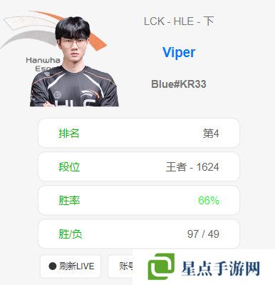 直播吧02月06日訊 近日韓服排位榜單更新,HLE下路選手Viper以一波十連勝直接沖到第四名,并且勝率高達66.4%。