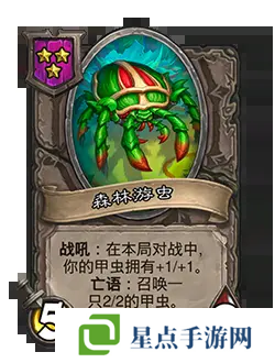 改動(dòng)后:2/5。亡語(yǔ):你的甲蟲在本局對(duì)戰(zhàn)中擁有+1/+1。召喚一只2/2的甲蟲。