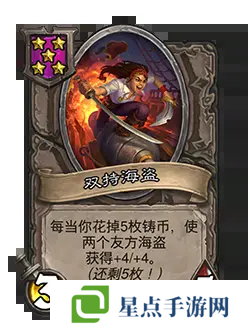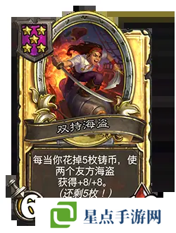 改動(dòng)后:[等級(jí)5]5/5。戰(zhàn)斗開始時(shí):使你的其他海盜獲得“亡語(yǔ):召喚1個(gè)海盜無(wú)賴?!?/p>