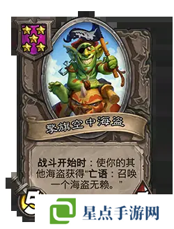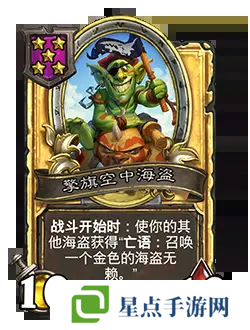改動(dòng)前:[等級(jí)4] 4/4。戰(zhàn)斗開始時(shí):使你的其他海盜獲得“亡語(yǔ):召喚一個(gè)1/1的海盜并使其立即發(fā)起攻擊。”