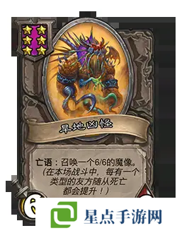 改動(dòng)后:6/6。亡語(yǔ):召喚一個(gè)6/6的魔像。(在本場(chǎng)戰(zhàn)斗中,每有一個(gè)類型的友方隨從死亡都會(huì)提升!)