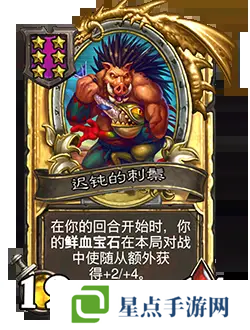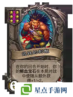 改動(dòng)后:6/7。在你的回合開始時(shí),你的鮮血寶石在本局對(duì)戰(zhàn)中使隨從額外獲得+1/+2。