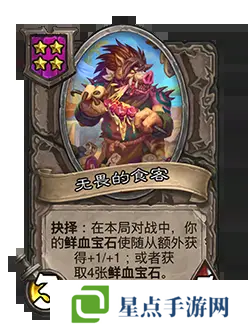 改動(dòng)后:[等級(jí)4] 3/5。抉擇:在本局對(duì)戰(zhàn)中,你的鮮血寶石使隨從額外獲得+1/+1;或者獲取4張鮮血寶石。