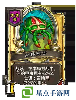 改動(dòng)前:2/4。亡語(yǔ):你的甲蟲在本局對(duì)戰(zhàn)中擁有+1/+2。召喚一只2/2的甲蟲。