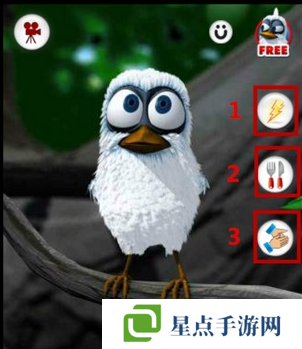 2、喂食:點(diǎn)擊屏幕上的刀叉圖標(biāo),將食物拖到拉里鳥面前,它會(huì)低頭吃掉。