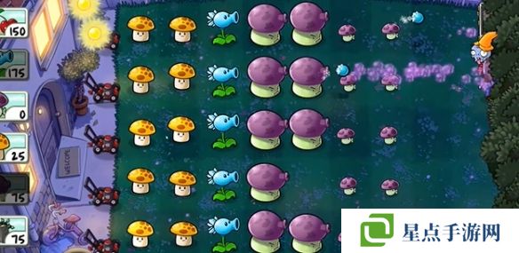2、先在左側(cè)種植兩個陽光菇,在中間種植三個小噴菇。