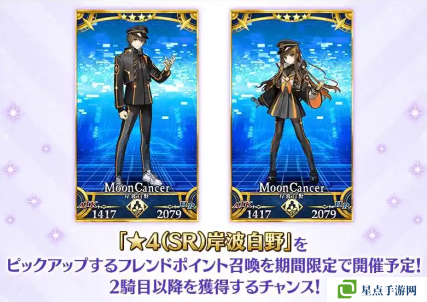 另一個(gè)性別的白野加入后,在友情池也會(huì)追加該性別白野的獲取,概率跟其他的友情池四星一樣。不過官網(wǎng)也提前預(yù)告,在3月1日~3月31日期間,友情池會(huì)限時(shí)提升岸波白野的獲取概率,估計(jì)依舊是跟上一次一樣的概率提升,大家可以多準(zhǔn)備一些友情點(diǎn)來抽另一個(gè)白野的寶具和從者幣,錯(cuò)過的話之后就很難補(bǔ)寶了。