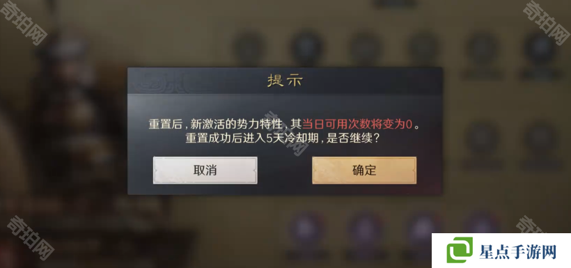 勢力加點可以進行重置,不過重置成功后會進入5天的CD(冷卻期)